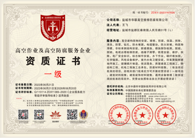 高空作業(yè)一級(jí)服務(wù)資質(zhì) |